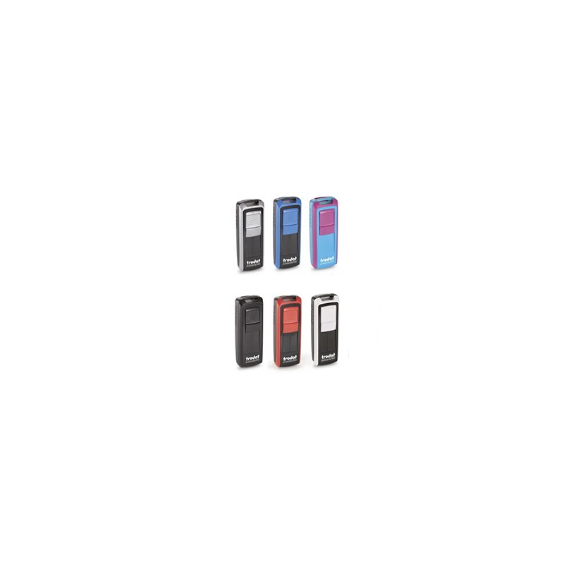 Le tampon encreur Pocket Printy 9512 existe en plusieurs coloris de monture : blanc, rose turquoise, rouge, bleu, argent, noir. Toutes les déclinaisons de couleurs existantes sont disponibles à la vente sur notre site www.touslestampons.com. Les montures vert bleu et fuchsia ne sont plus au catalogue.