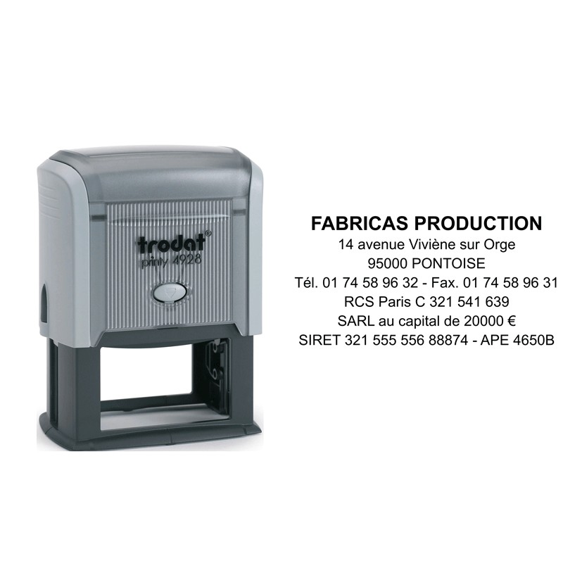 Les empreintes produites sont d'une grande qualité de manière générale, et plus particulièrement sur un caoutchouc pour tampon 4928. Réalisées en caoutchouc naturel, elles sont propres et nettes. Elles sont gravées puis découpées de façon à être appliquées facilement sur votre monture. La surface arrière adhésivée permet une tenue impeccable sur la monture Trodat correspondante.