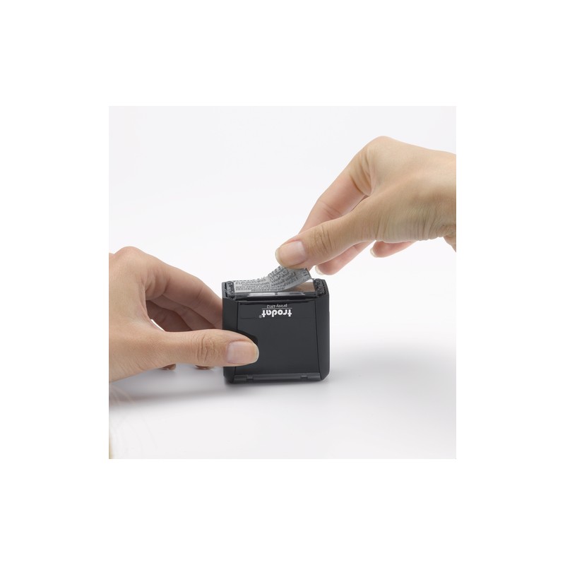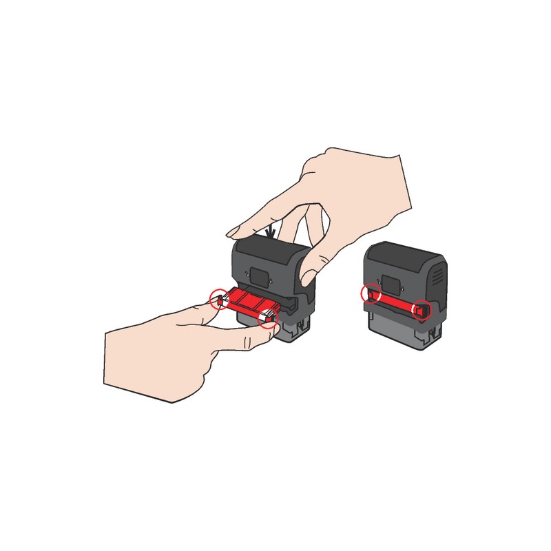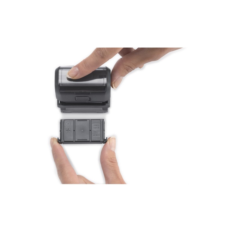 La cassette d’encrage est à l’intérieur du mécanisme, ce qui garantit des mains propres à chaque usage. Il n'y a pas besoin d'encreur séparé puisque l'encreur est inclus.